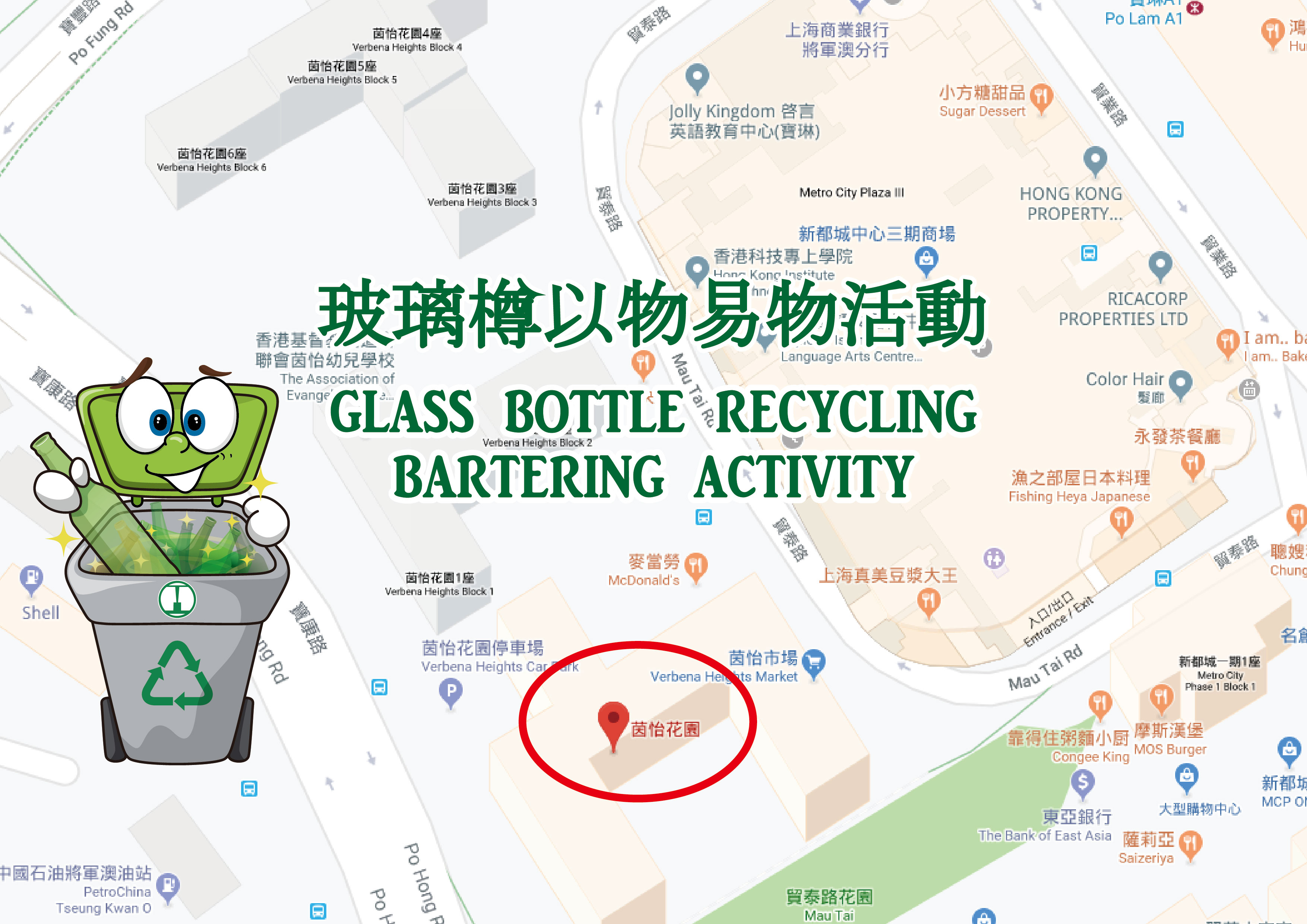 To increase the green awareness among the public, Baguio held a glass bottle bartering activity held by the Hong Kong Housing Authority at Verbena Heights in every third Friday between June to November 2019. To encourage the clean glass bottle recycling, a limited edition of Big Waster souvenir was available for redemption by recycling specific quantity of glass bottles.