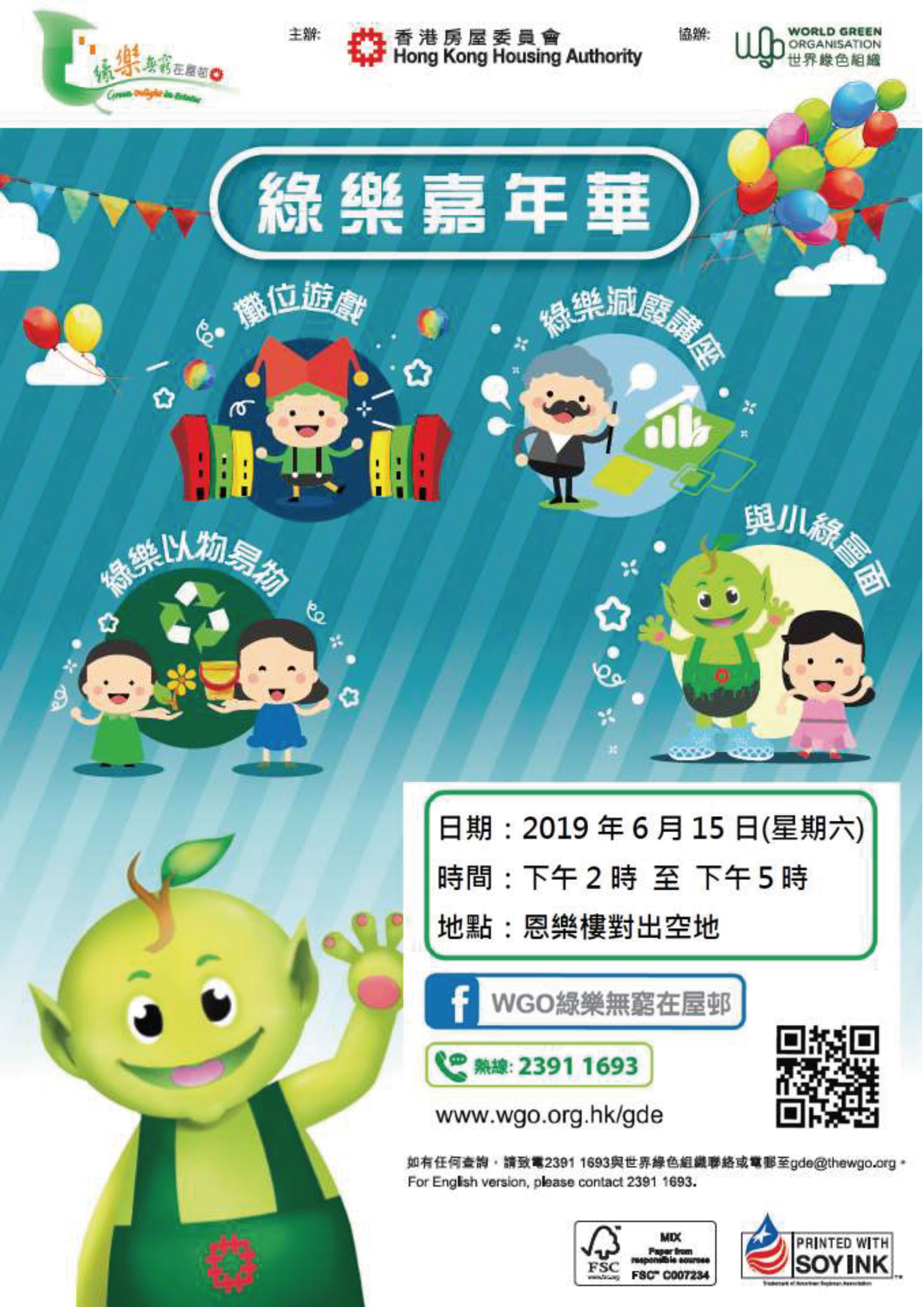 To increase the green awareness among the public, Baguio held a glass bottle bartering activity in the “Green Carnival” held by the Hong Kong Housing Authority and co-organized by the World Green Organization at Tin Yan Estate. To encourage the clean glass bottle recycling, a limited edition of Big Waster souvenir is available for redemption by recycling specific quantity of glass bottles.